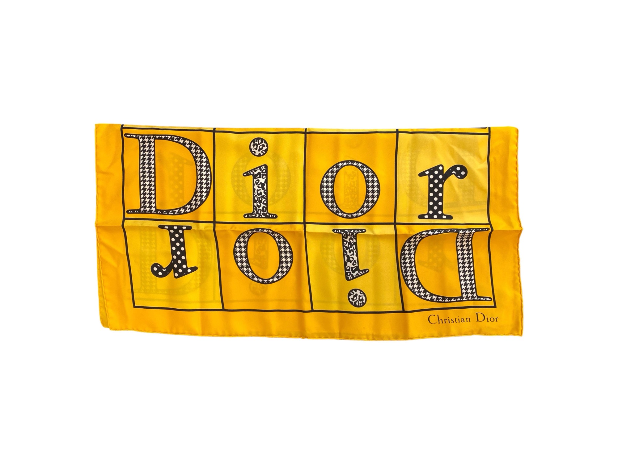 Dior Yellow Silk Scarf with Dior Patterns