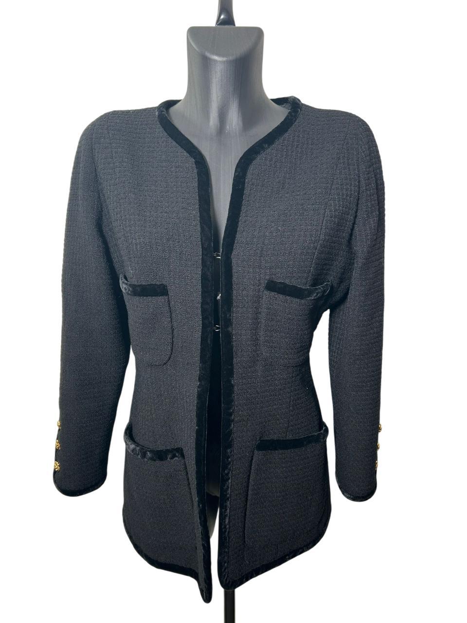 Chanel Black Tweed Jacket with Velvet trims ('80s)