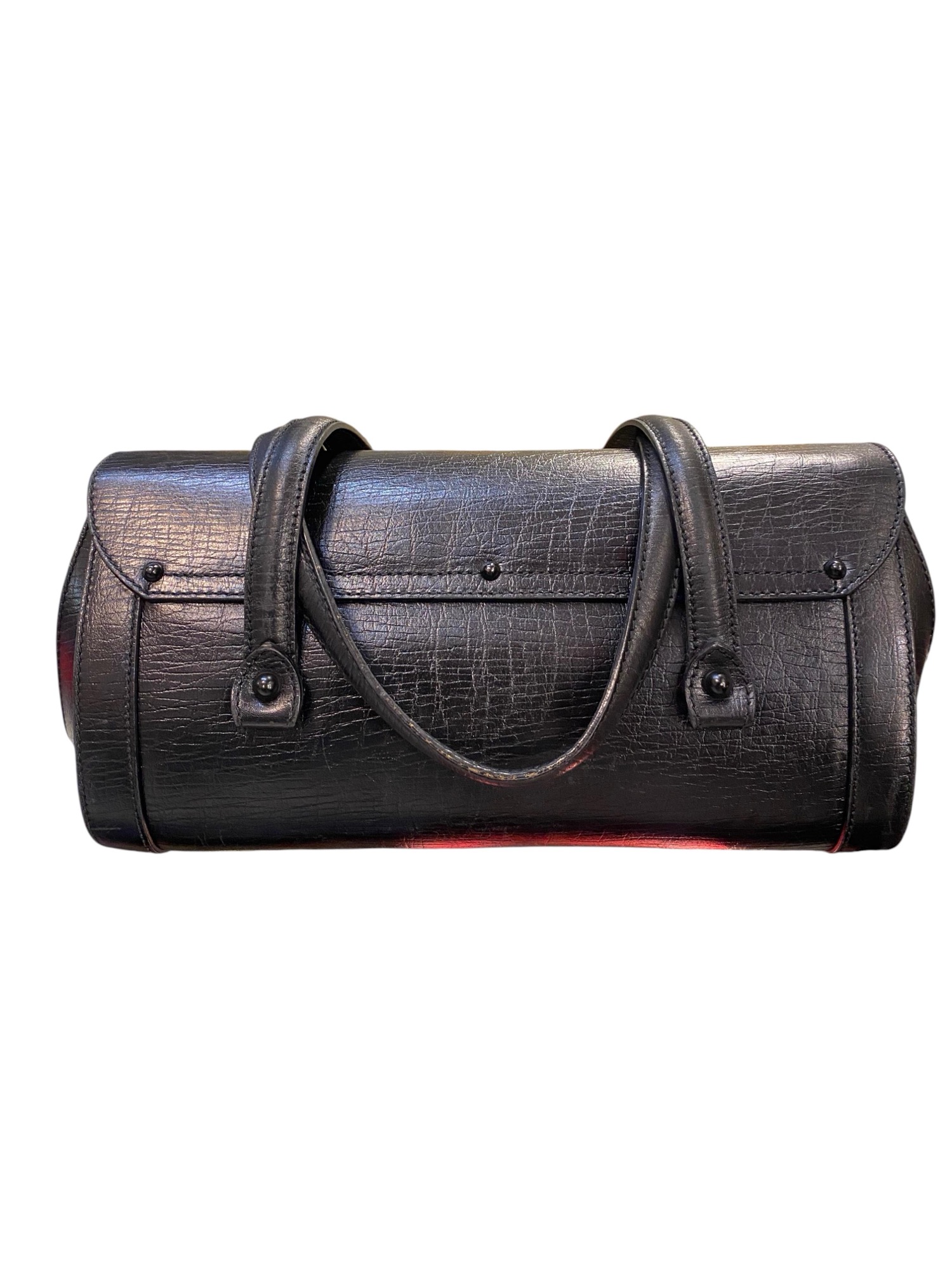 - Two black leather handles