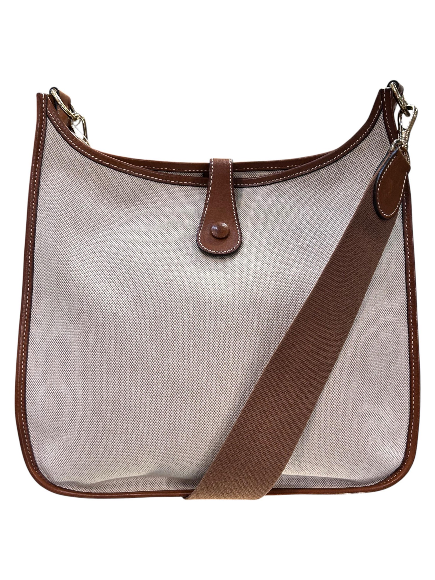 1998 Evelyne Hermes shoulder bag Beige fabric and brown leather