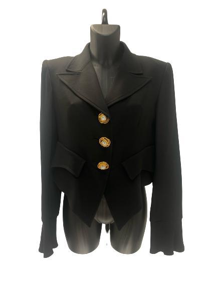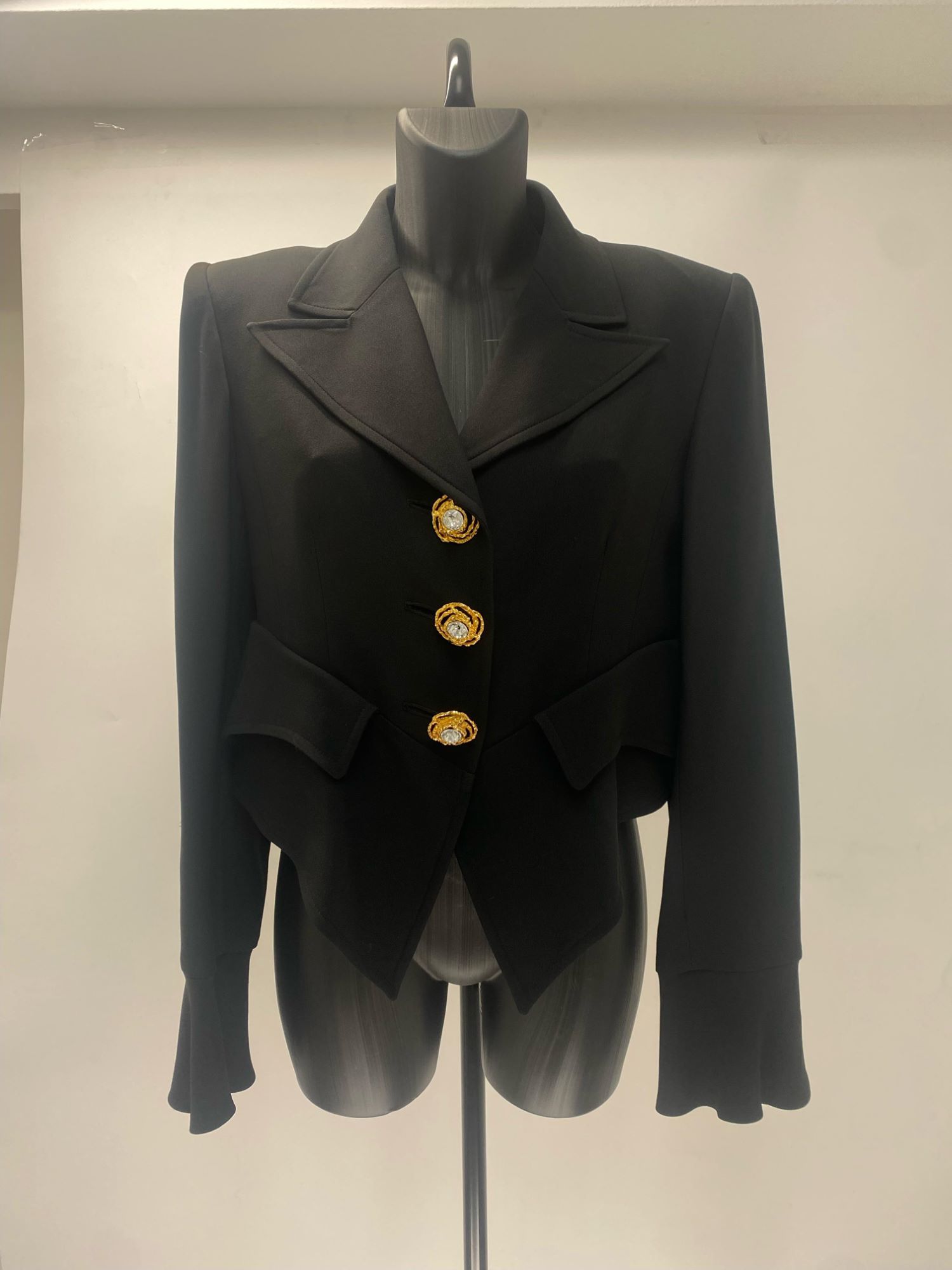 The irregulars pockets are on the front ( both sides) and a jewel button is embelleshing the arms.